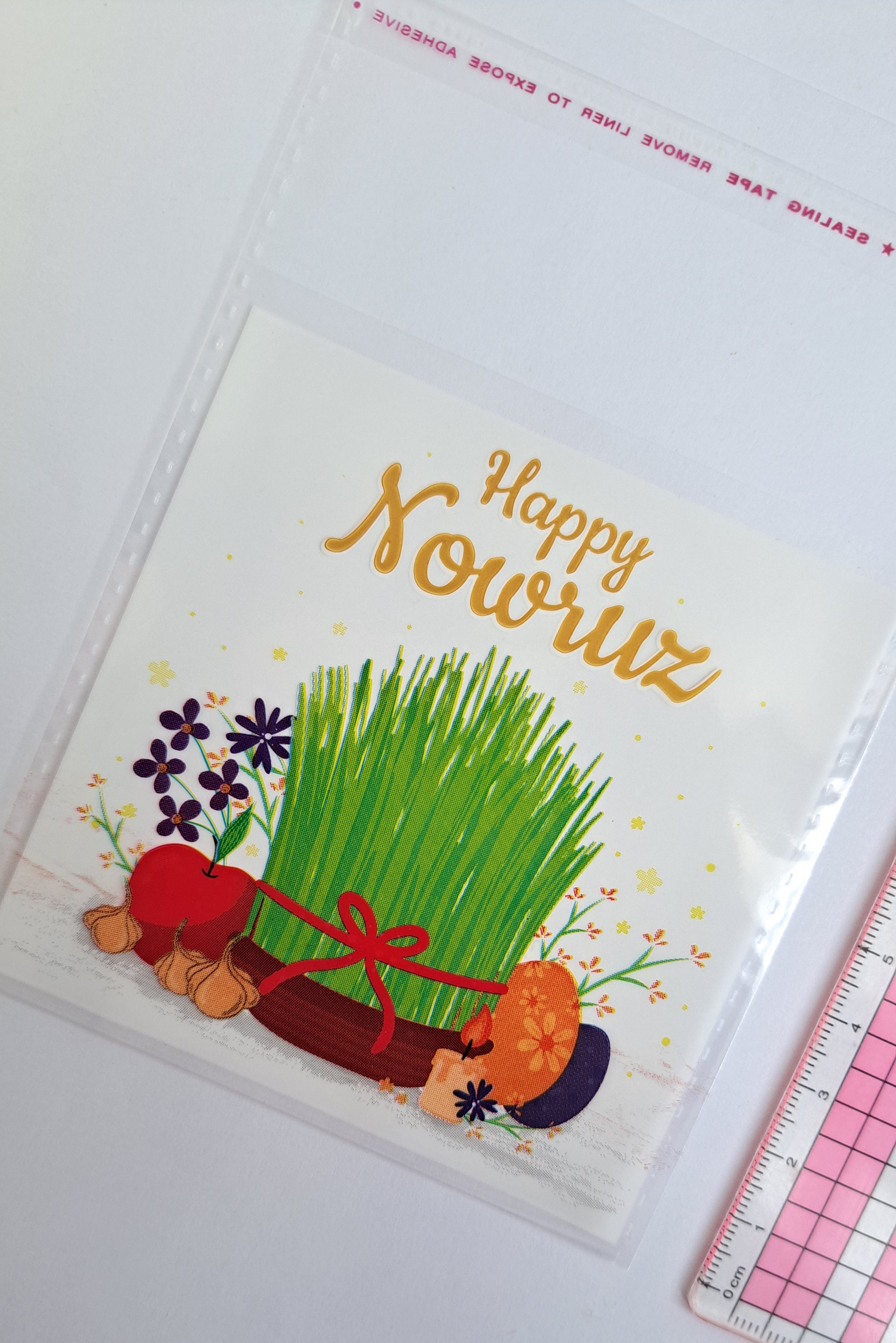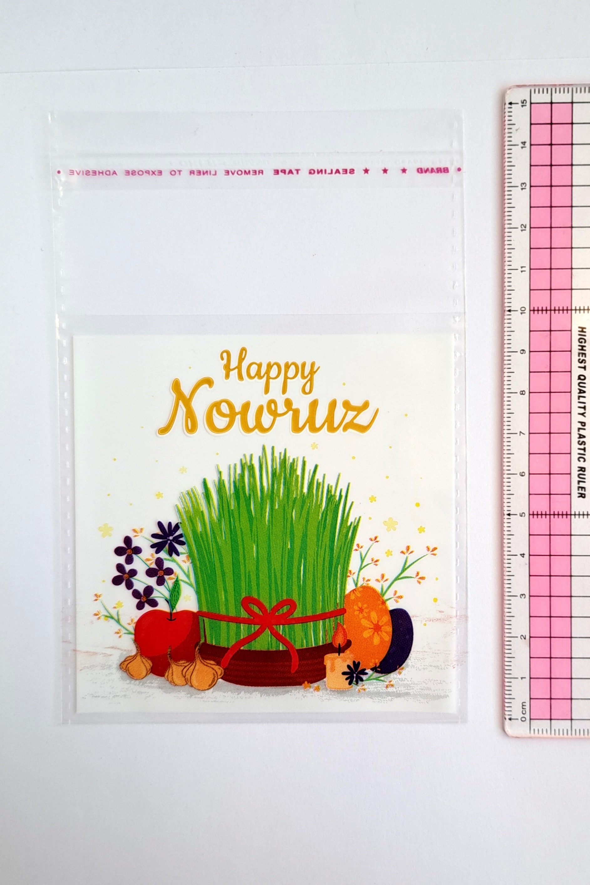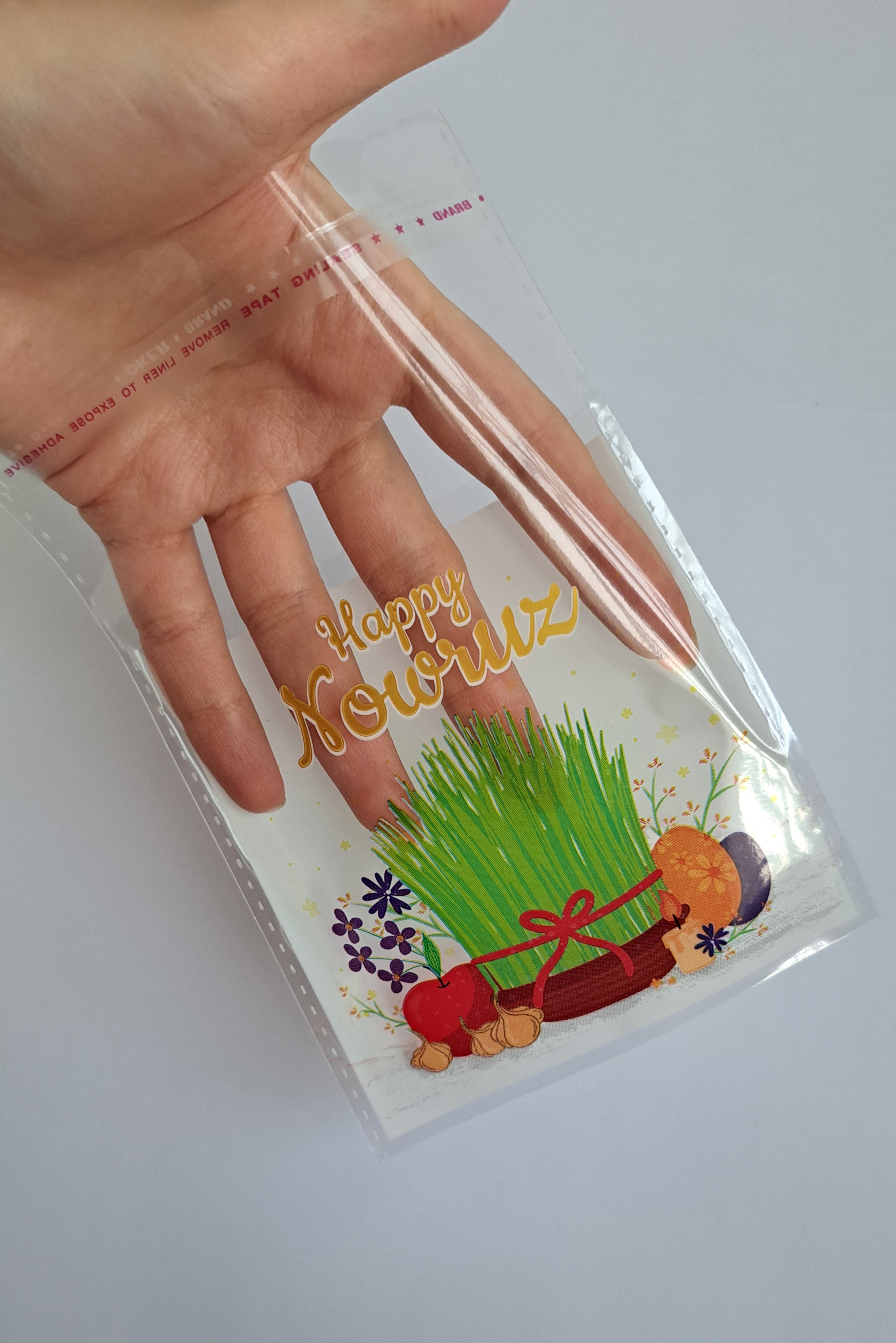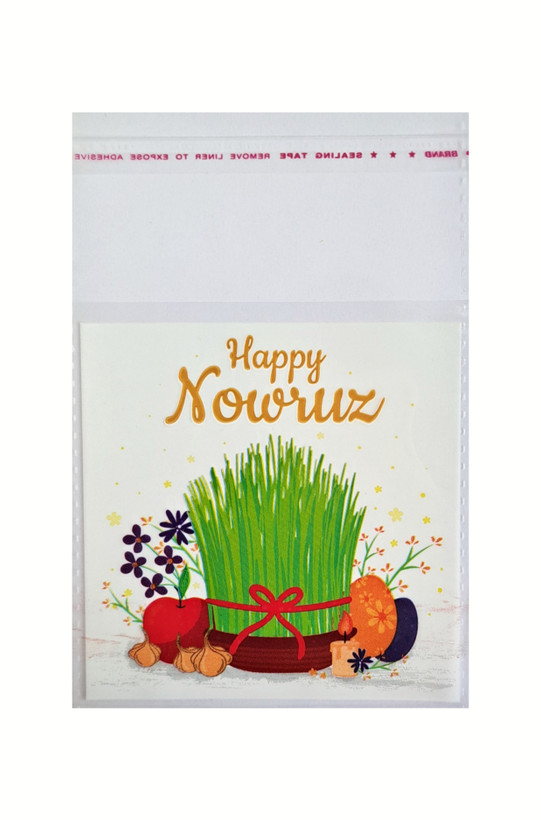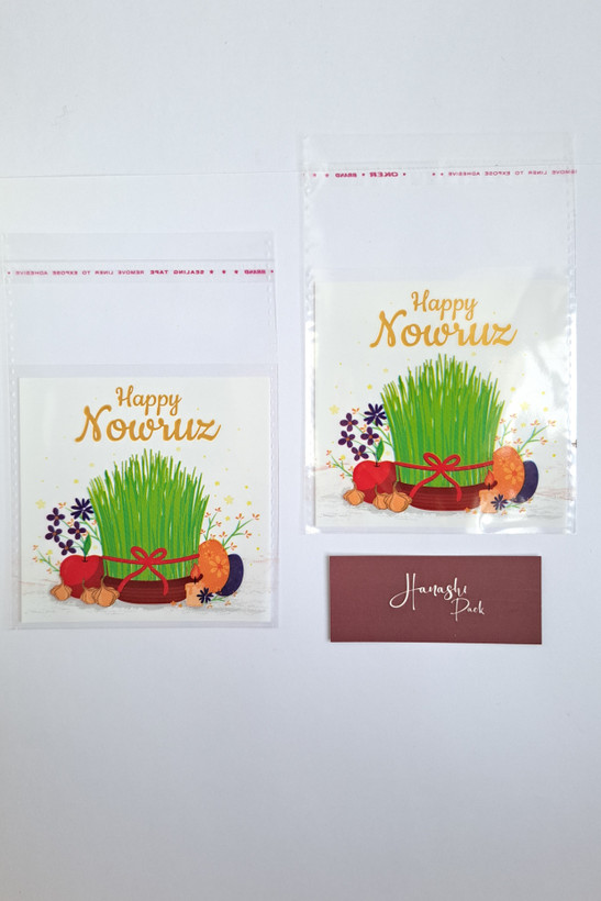 پاکت / مشما / سلفون چسبی طرحدار نوروزی با نوشته انگلیسی Happy Nowruz هاناشی