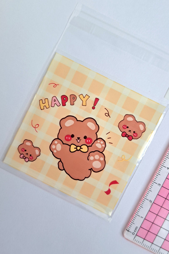 پاکت / مشما / سلفون چسبی کیوت و گوگولی با نوشته انگلیسی Happy کد 107
