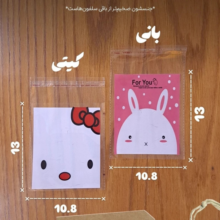 پاکت سلفون چسبدار 10 عددی کیتی پاپیونی ده عددی (ابعاد داخلی 10.8 در 14)